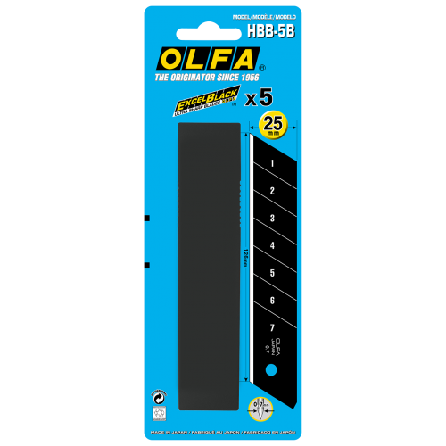 De HBB-5B bevat een houder met 5 ultrascherpe zwarte reservemessen van 25 mm, speciaal ontworpen voor zware toepassingen waarbij precisie én kracht vereist zijn. Deze messen zijn vervaardigd uit hoogwaardig koolstof-gereedschapsstaal en bieden tot 25% meer scherpte dan standaardmessen – voor moeiteloos snijden, zelfs door taaie materialen.