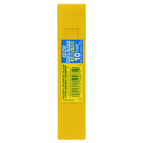 De OLFA® LBD-10 bevat 10 heavy-duty reservemesjes van 18 mm met een dubbel segment voor extra lange levensduur. Elk mesje is ontworpen voor professioneel snijwerk en wordt geleverd in een stevige kunststof houder voor veilige opslag en eenvoudig gebruik.