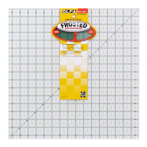 De OLFA QR-16S is een ruime quiltliniaal met inch-verdeling, ideaal voor het snijden van grote quiltblokken en volledige quiltstukken. De unieke matte “frost”-laag zorgt ervoor dat de zwarte belijning uitstekend zichtbaar is op zowel lichte als donkere stoffen. Dankzij de antislip afwerking blijft de liniaal stevig liggen tijdens het snijden